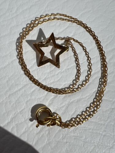 This is a pre-owned 12K yellow gold filled star necklace measuring 15 inches in length. It is perfect for those ones who love fashion jewelry