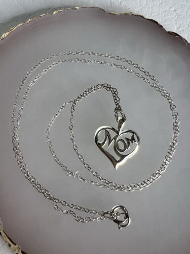Vintage 925 Sterling Silver Mom Pendant Necklace 17”